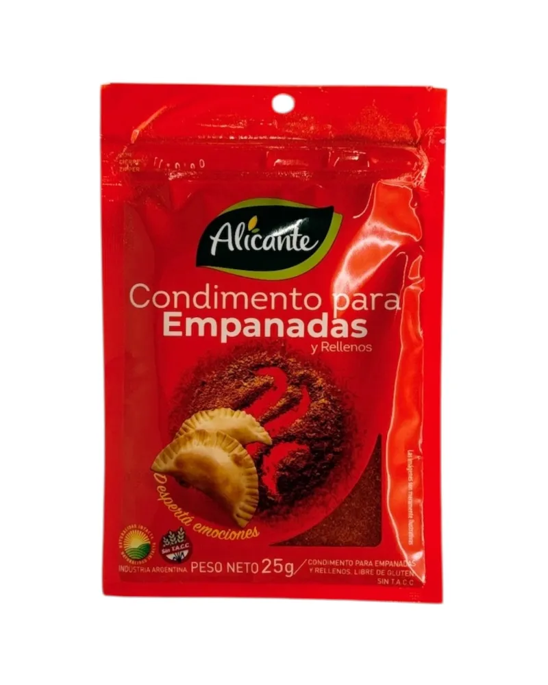 Das Alicante Empanada-Gewürz ist eine Gewürzmischung, die zum Würzen der Füllung von Empanadas, insbesondere argentinischen Empanadas, verwendet wird. Sein Geschmack ist eine Kombination aus süß, scharf und würzig, die den Geschmack der Füllung hervorhebt und ein Gleichgewicht zwischen Aroma und Geschmack schafft.