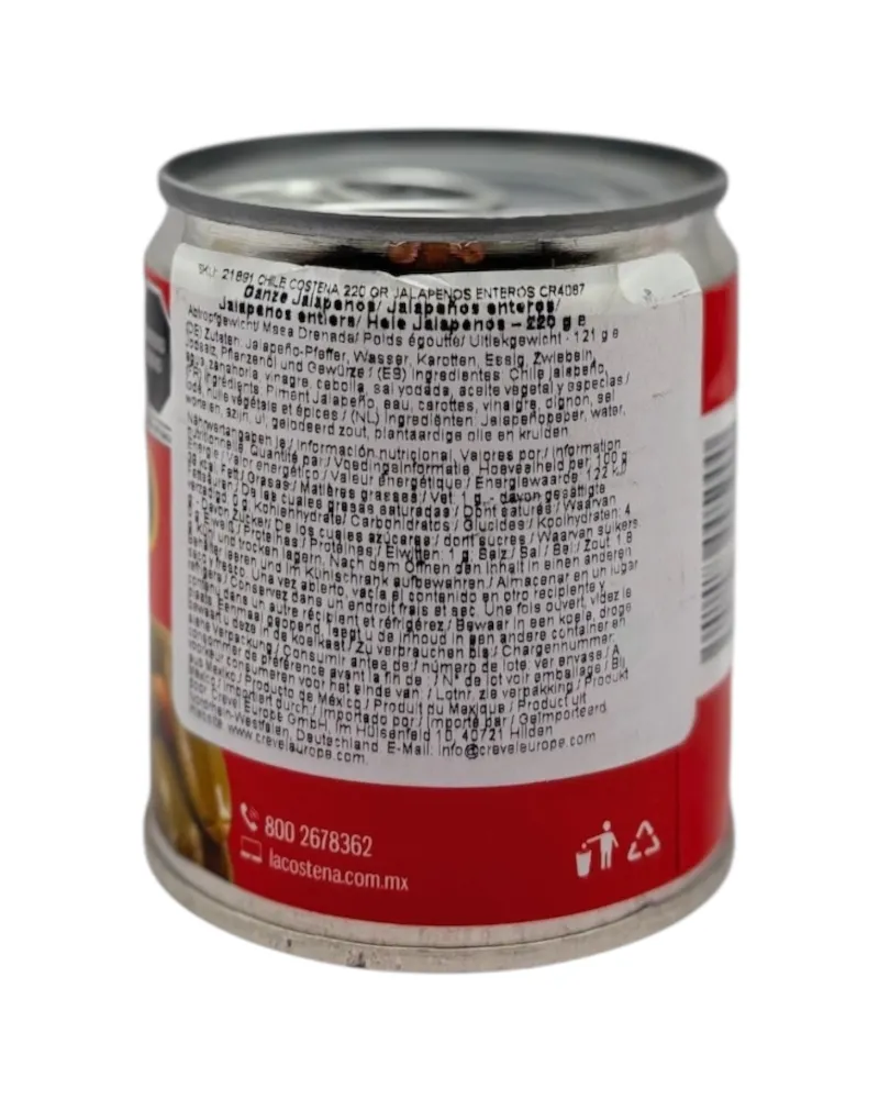 Los jalapeños enteros La Costeña han ganado popularidad mundial por su delicioso sabor picante . Se pueden comer directamente de la lata o para darle a tus platillos ese delicioso toque mexicano que todos adoran.