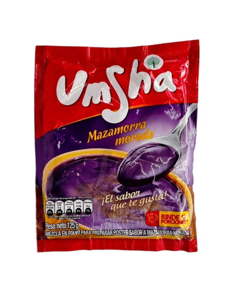 La mazamorra morada Umsha, también conocida como “La Negrita”, sabe a un postre peruano tradicional hecho de maíz morado y frutas, con un sabor dulce y ligeramente ácido. La mezcla en polvo de Umsha ofrece una manera fácil de recrear este sabor casero en casa.