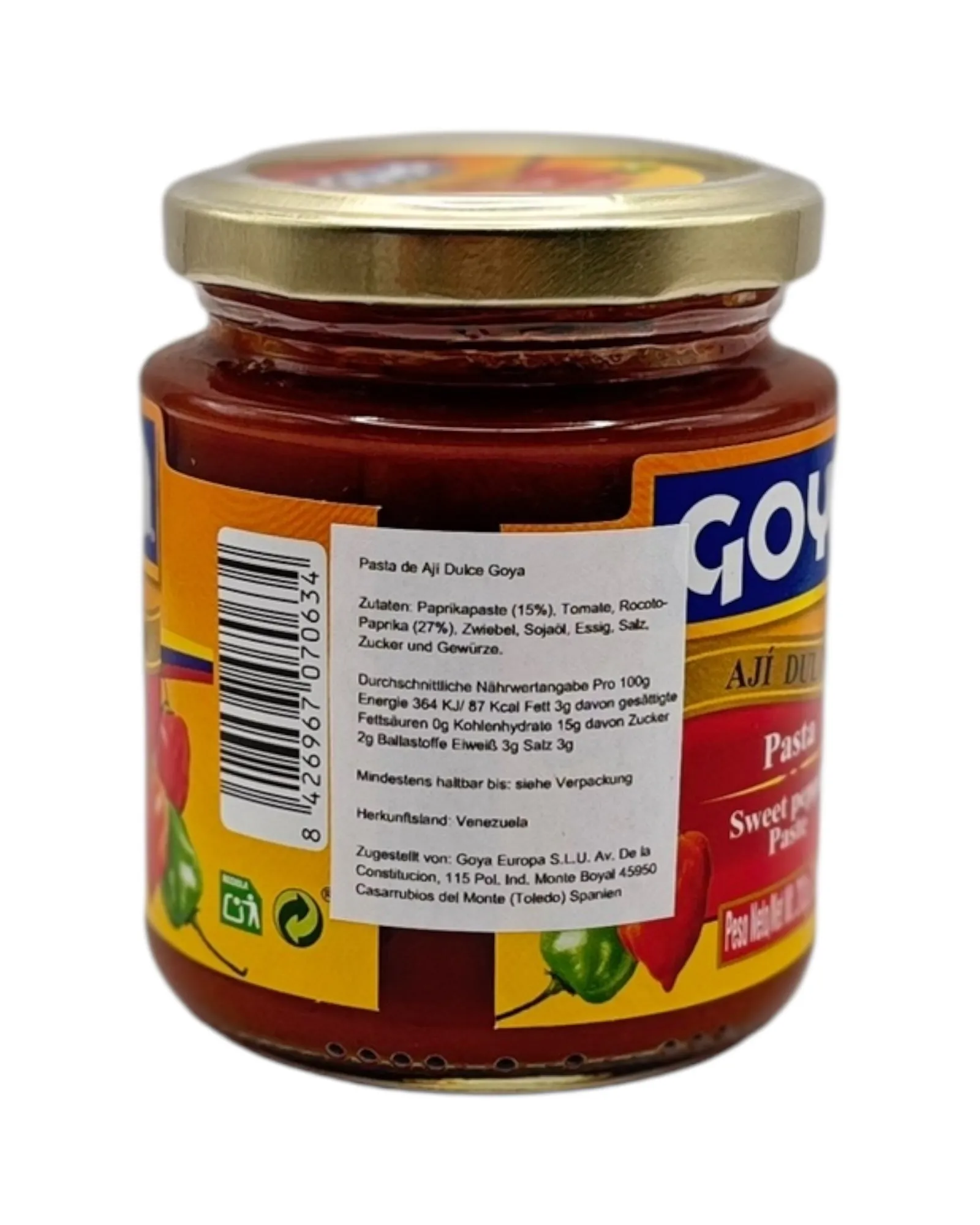 La pasta de ají dulce Goya es una pasta de ají dulce, utilizada como sazonador en la cocina, especialmente en la gastronomía venezolana. Es una pasta dulce y agridulce, que se puede utilizar para preparar sofritos, salsas, guisos, fajitas, burritos y enchiladas, entre otros.